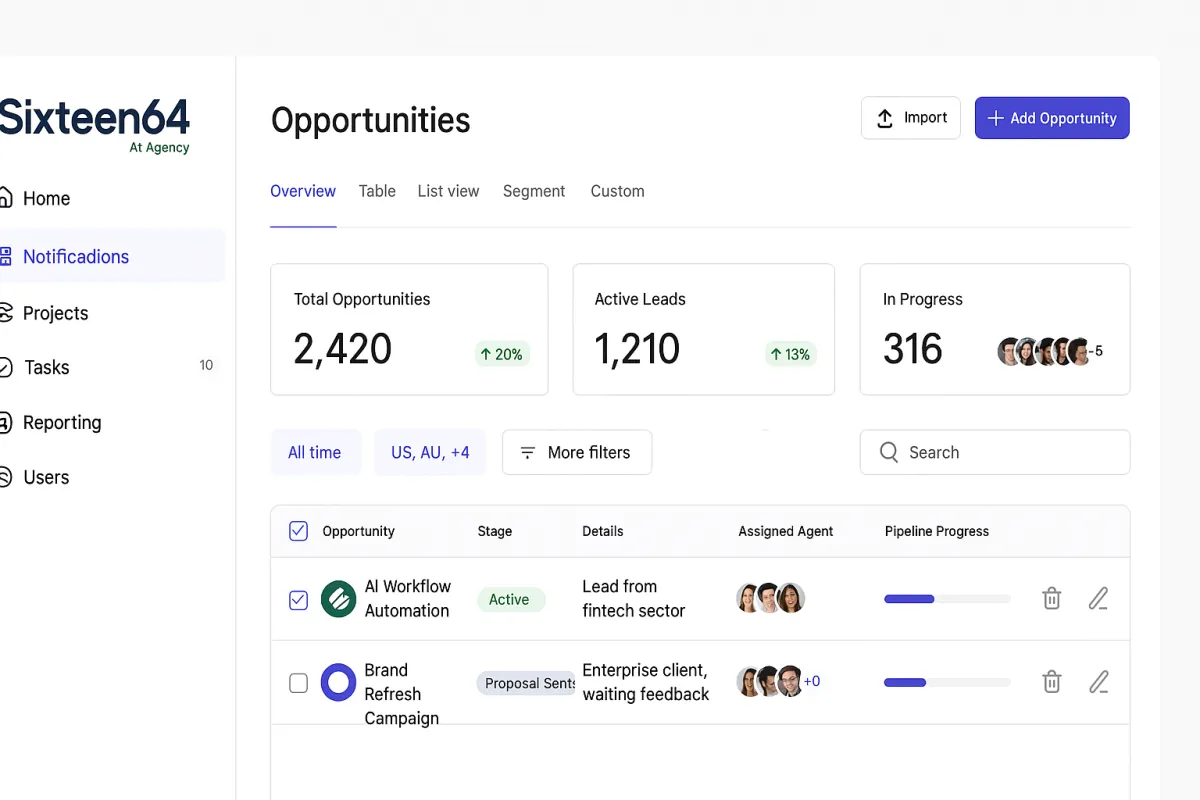 Yes. Sixteen64 integrates with the most popular CRMs (including Salesforce, HubSpot, and Go High Level), as well as payment processors, email platforms, and communication tools. If you use a system we don’t list, we’ll work with you to connect it via API or a custom integration.
